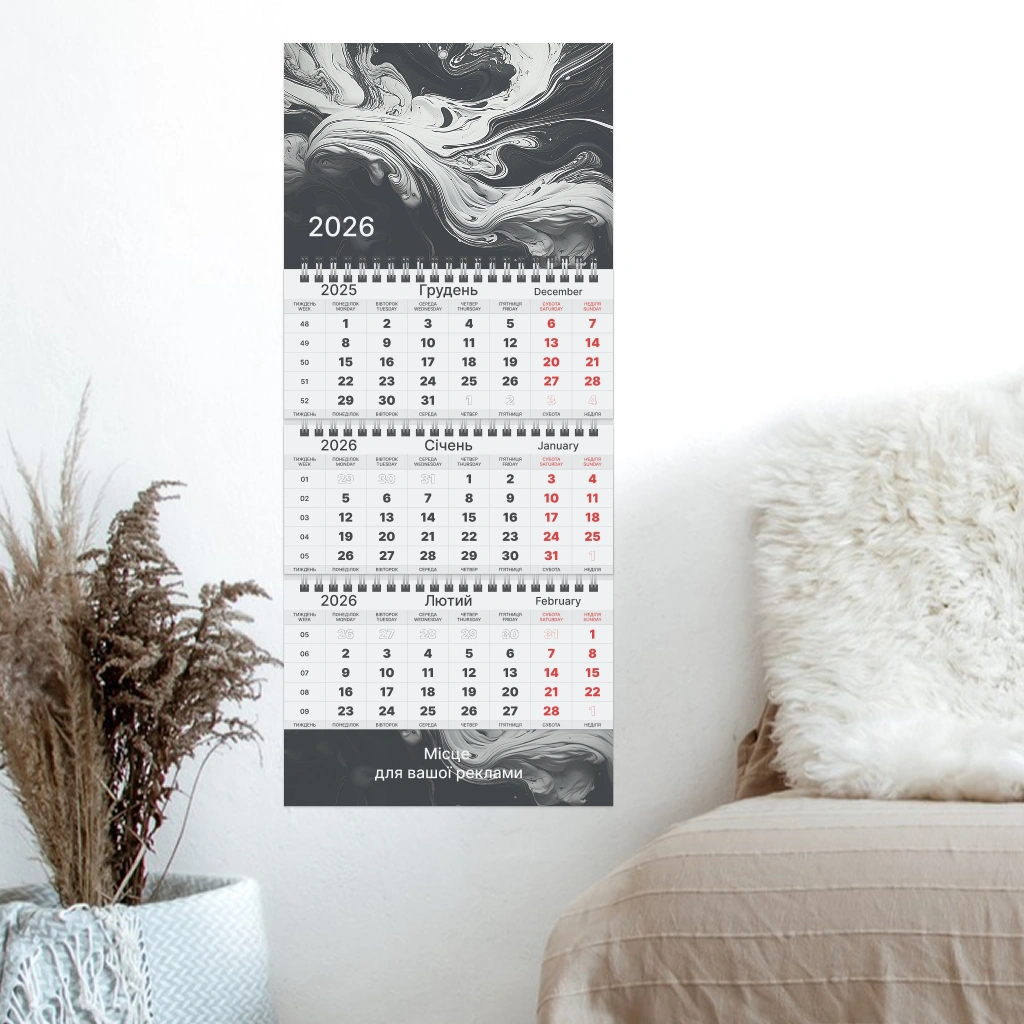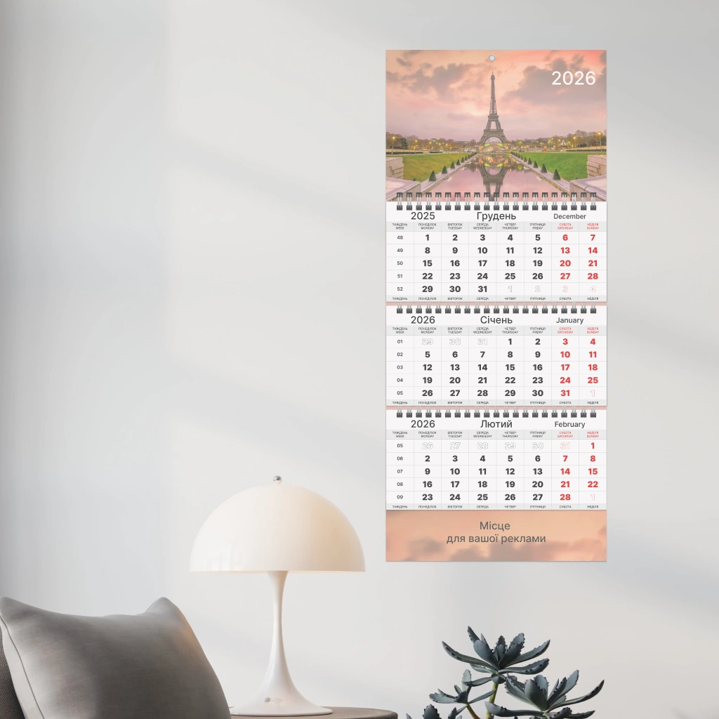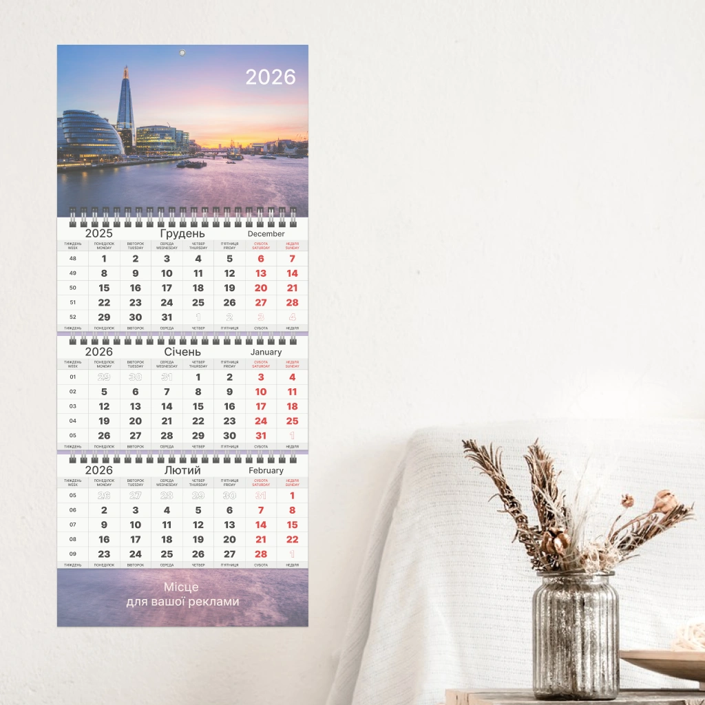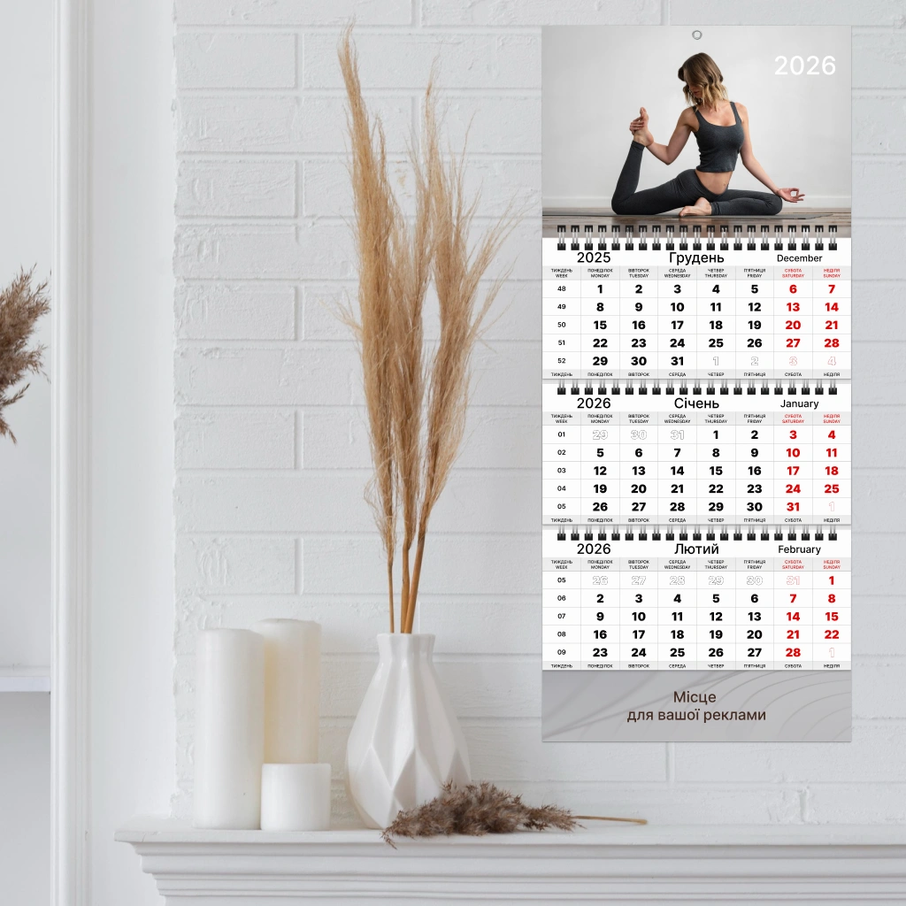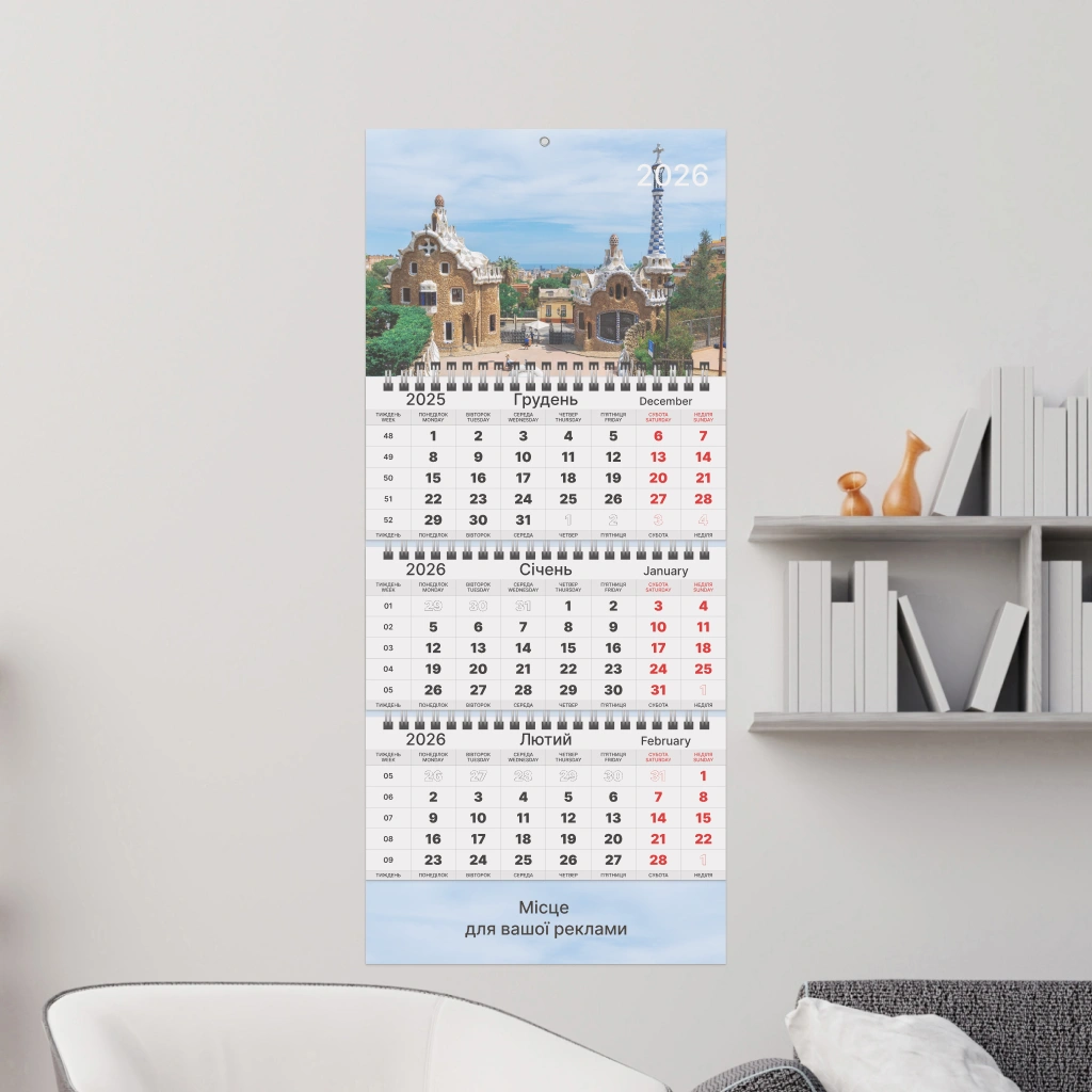 Квартальний календар, 3 пружини 1 рекламне поле